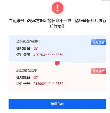 方法2:点击“验证信息”,输入和“指定信息”一致的个人信息,校验通过后可正常签署合同并通过实名认证;